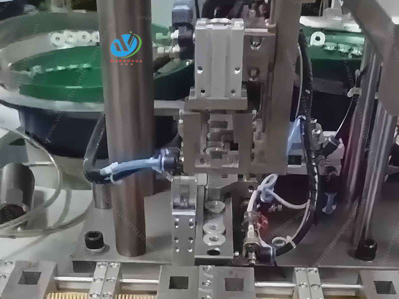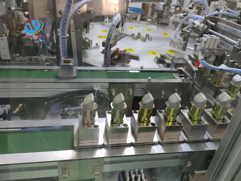 4、Fully automatic feeding and assembling. Automatic riveting, AB foot assembling, reed loading, electrical inspection, dust removal shell, laser marking, and collect plates. Auto-start / stop when there is material (or no material) detected. Detect parts presence, the good products and NG products will be unloaded separately.