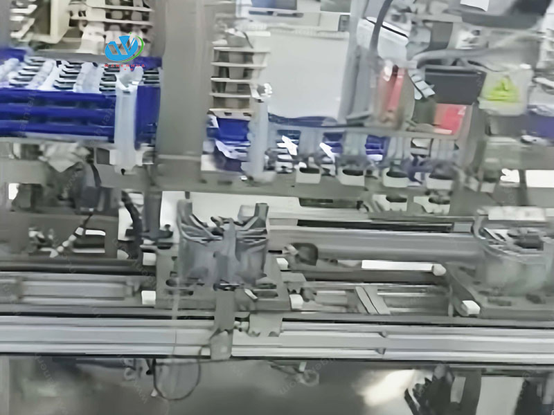 This production line successively completes the assembly of all parts of relay including coil, iron core, yoke, moving spring, base plate, resistance, terminal, stop piece, shell and other parts, and carries out the inspection of all electrical parameters of the assembled products, selects the defective products found in the assembly and inspection process, and finally outputs the qualified finished products. This production line realizes the full automatic production of relay, reduces the labor cost and improves the production efficiency.