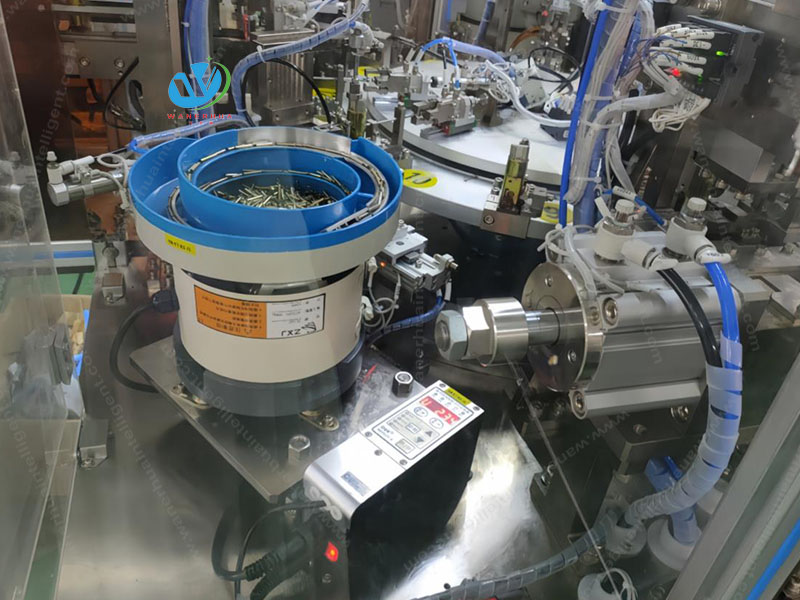 4、Fully automatic feeding and assembling. Automatic riveting, AB foot assembling, reed loading, electrical inspection, dust removal shell, laser marking, and collect plates. Auto-start / stop when there is material (or no material) detected. Detect parts presence, the good products and NG products will be unloaded separately.